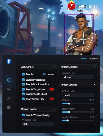 AIMBOT FEATURES: ●Enable Aimbot ●Aimbot Prediction ●Select Hitbox Type ( Head / Chest / Pe*is ) ●Predictions Dot ●Target Line ●Visible Check ●Aimbot FOV ●Select Aimbot Type ( Mouse / Silent ) ●Shoot Through Walls ●Aim Weapon Configs / Select Weapon Types ●Edit FOV Circle Size ●Set Smoothness ●Aim Distance ●TriggerBot ( Coming Soon )